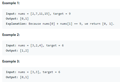 덧셈하여 타겟을 만들 수 있는 배열의 두 숫자 인덱스를 리턴하라.