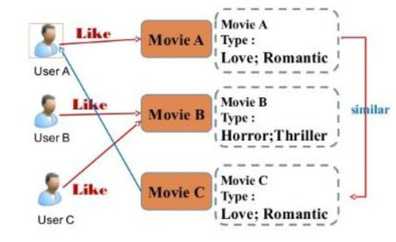 영화 B는 호러, 스릴러 영화이며, 영화 C는 멜로, 로맨스 영화입니다. 그렇다면 사용자 A에게 추천할 영화는 영화 B와 영화 C 중 무엇일까요?
